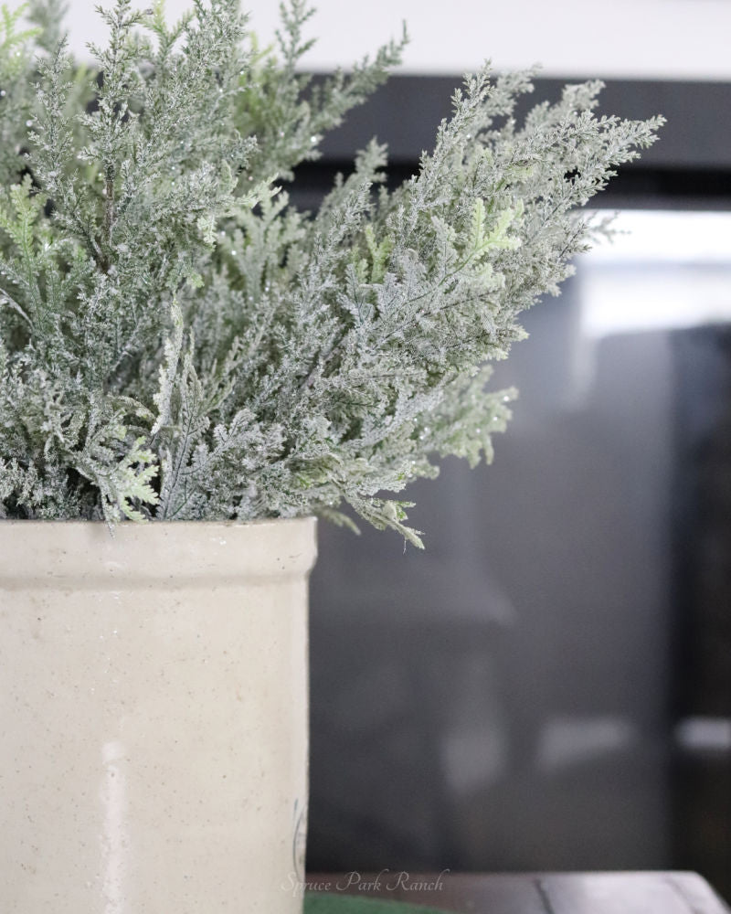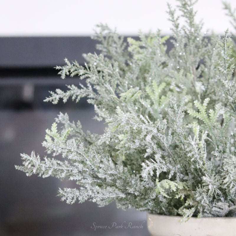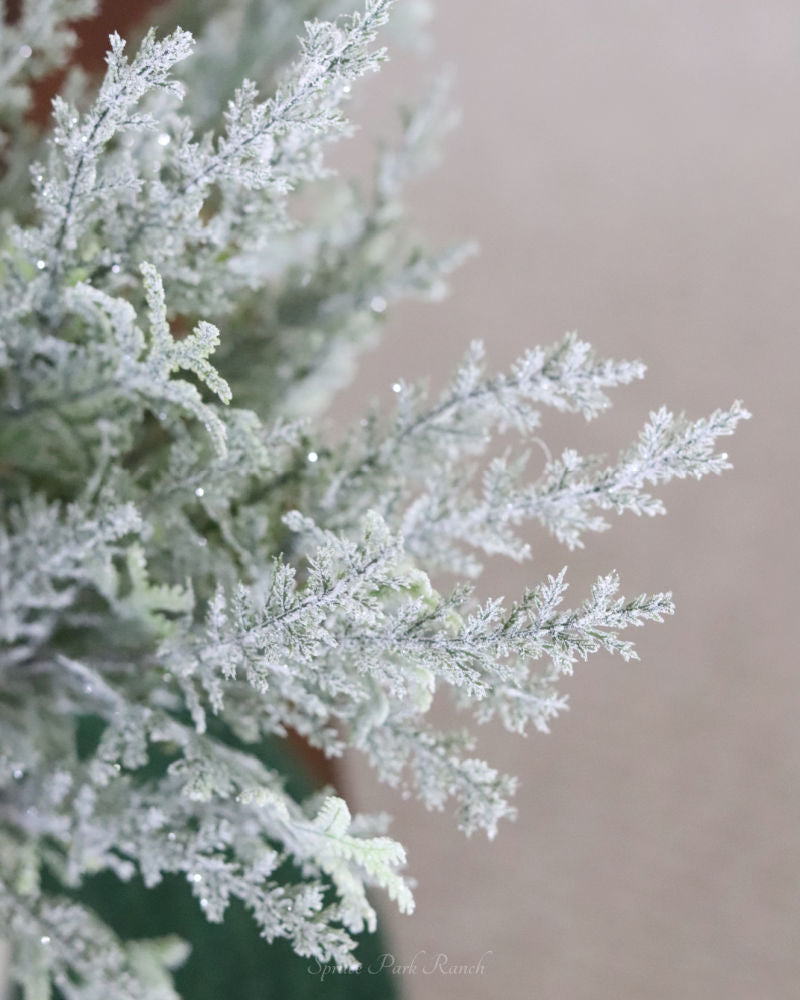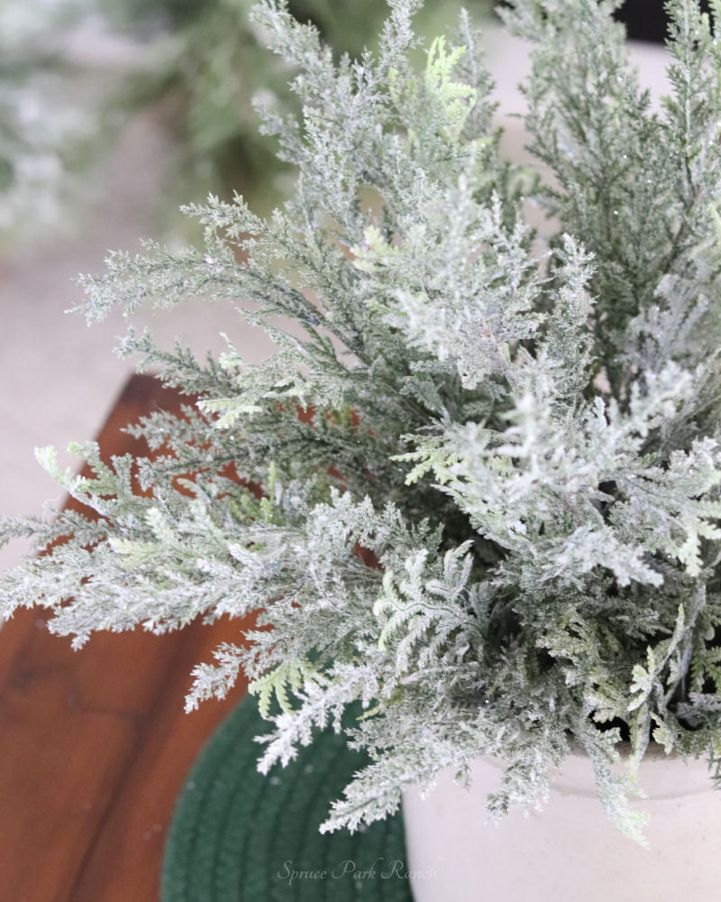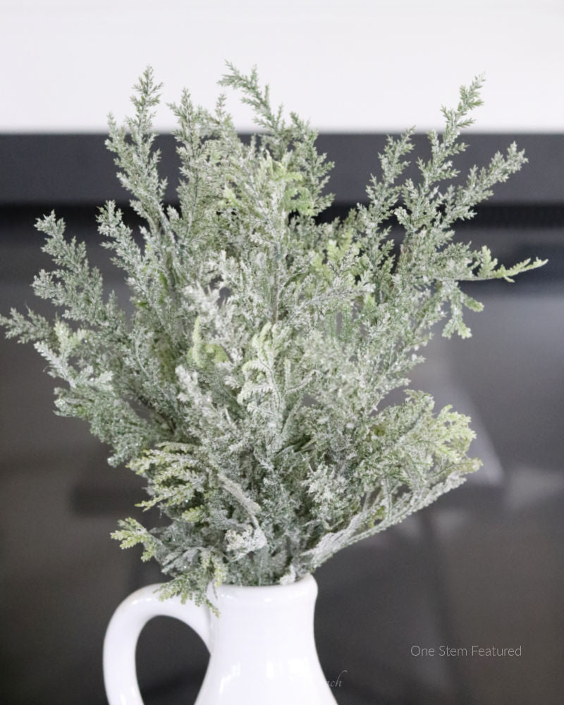 Create a timeless holiday aesthetic with the Flocked Cedar Bush. This elegant wintery piece offers a classic and sophisticated look featuring snowy cedar branches. Ideal for the elegant look, this versatile greenery can be used on its own or incorporated into a festive Christmas arrangement. Let this timeless greenery be the perfect addition to your holiday décor. Accessories sold separately.