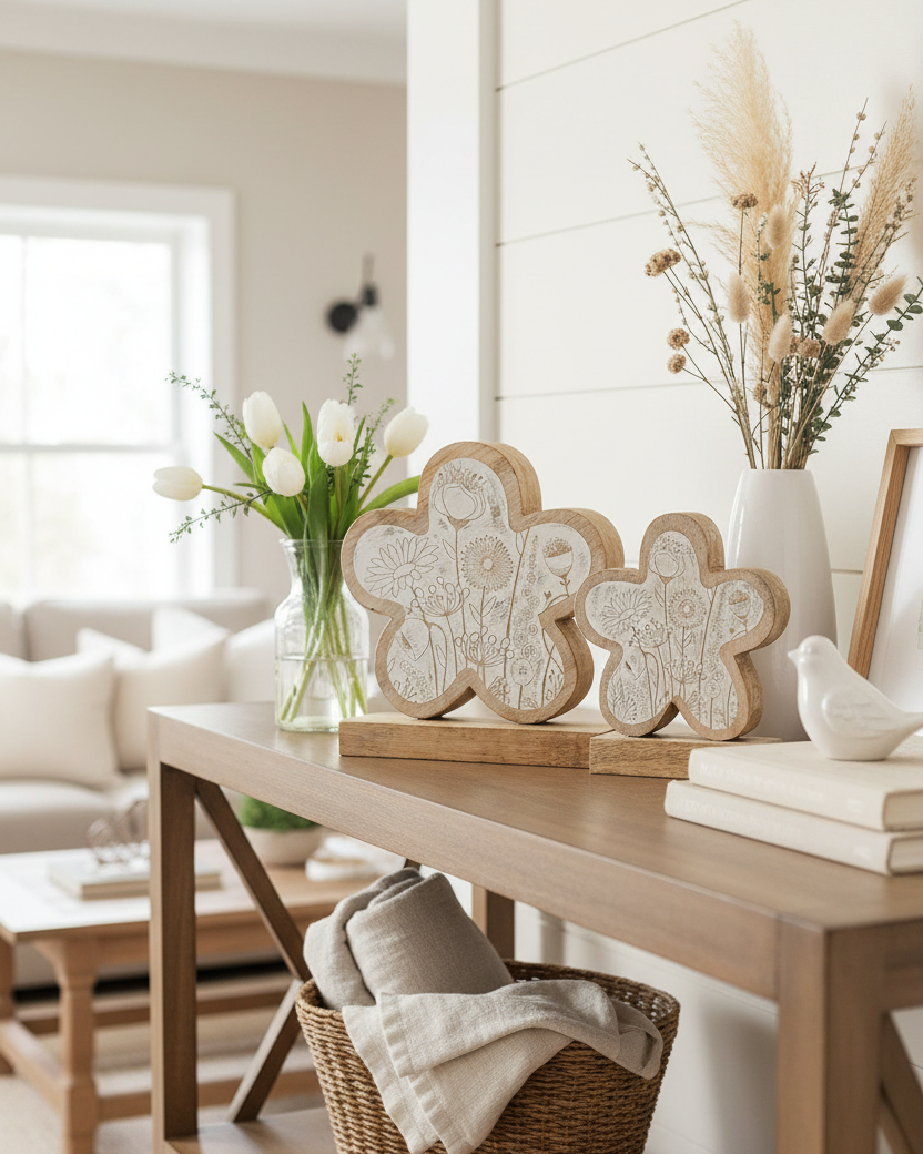 Add some whimsy to your home with our distressed, Flower-Engraved Flower on Stand. The distressed, engraved floral detailing and neutral colour palette make it the perfect addition to any shelf, bookcase, or mantle. It's a charming and beautiful piece that will brighten up your space all spring through summer. Due to the nature of materials and the design process, minor imperfections and variations are part of the charm. Sold individually. Accessories sold separately.