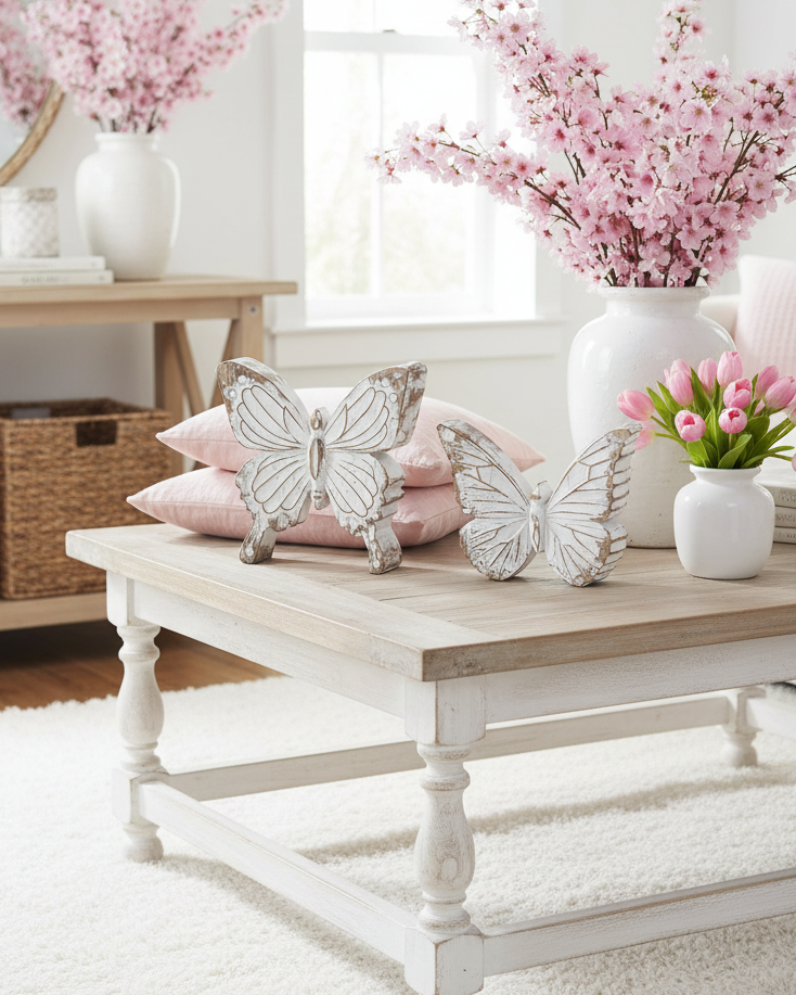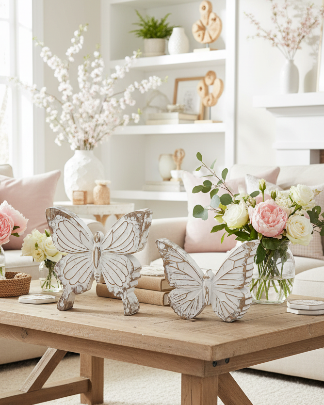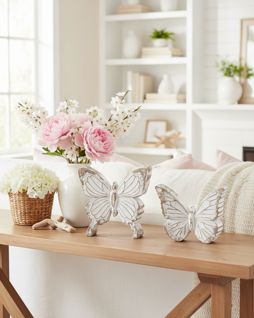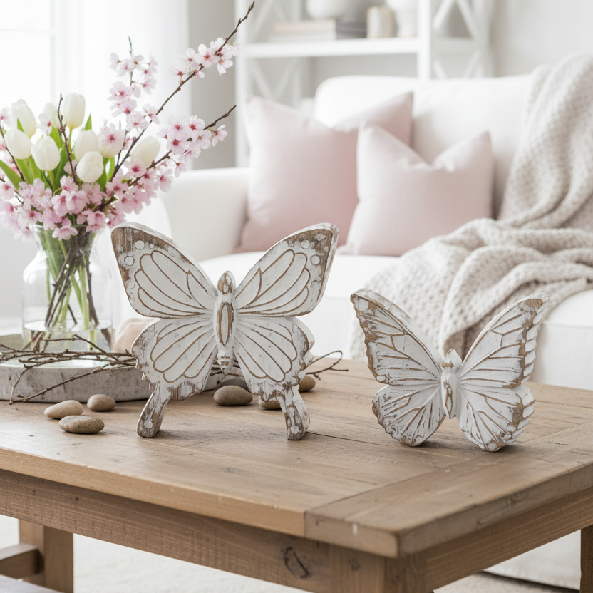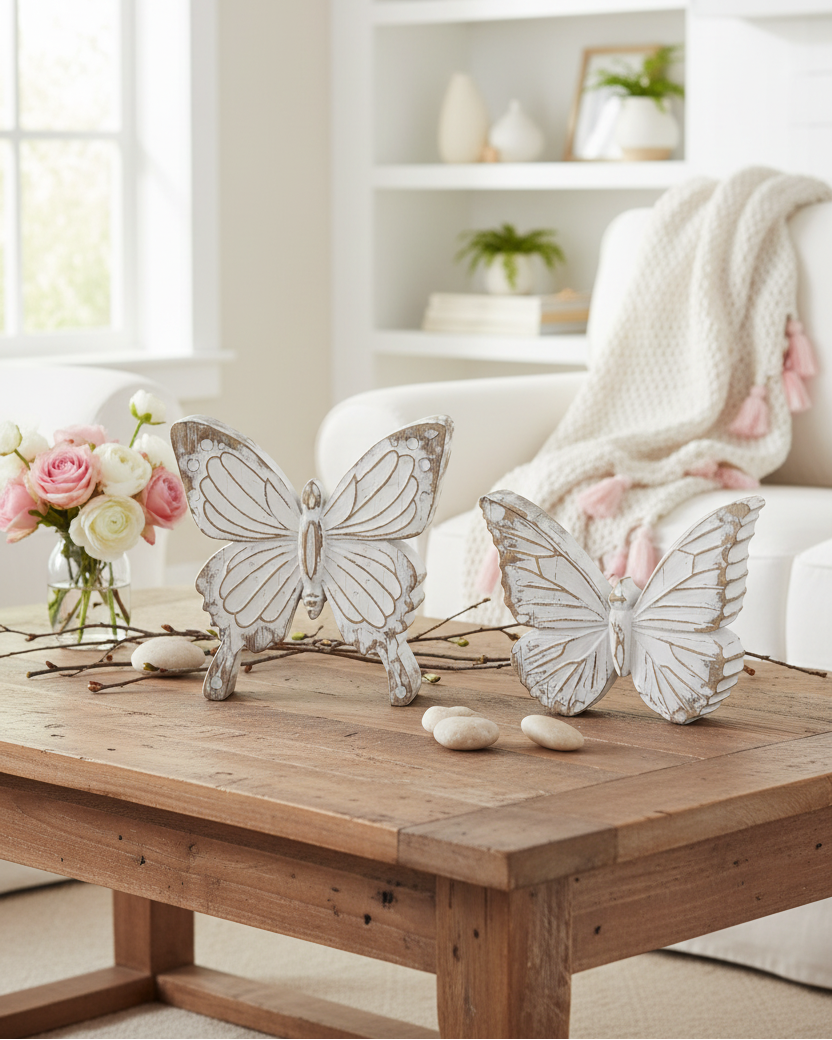 Whitewashed Carved Resin Butterfly