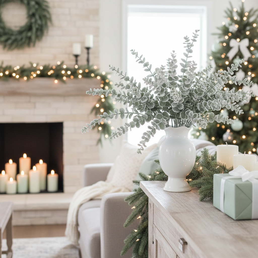 With shades of deep green covered in snow and glitter accents, this eucalyptus stem is a Winter must have! Mix in with Winter evergreens or simply add a few stems to a vase! A gorgeous piece for the season. A customer favourite! Stem too long? Simply trim to size. Sold individually. Accessories sold separately.