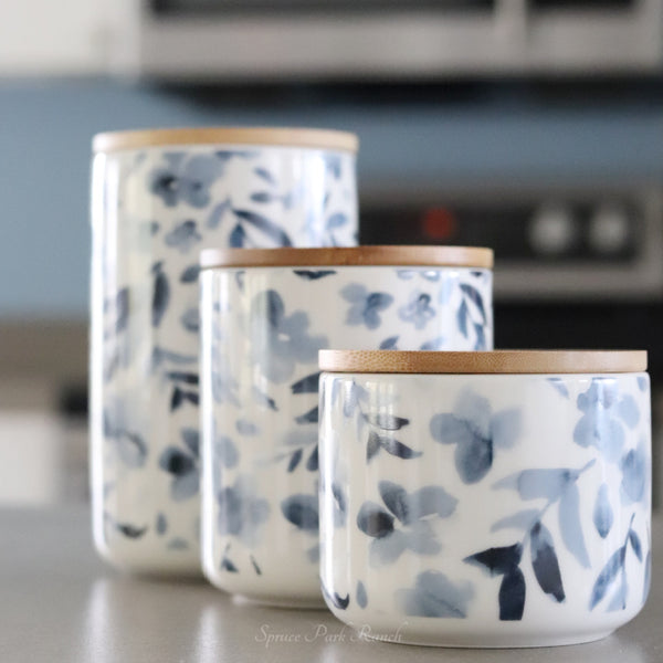 Watercolour Blue Floral Canister Set of 3