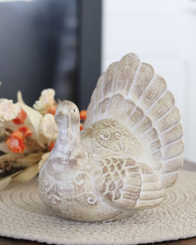 Spruce up your Thanksgiving table or fall display with this adorable Brown Whitewashed Resin Turkey. Made of resin, this turkey is designed with a lightly distressed and unique carved look that will add a touch of whimsy to any setting. With an overall brown colour and subtle whitewashed details, it will easily complement any décor. Due to the nature of materials and design process, minor imperfections are part of the charm. Sold individually. Accessories sold separately.