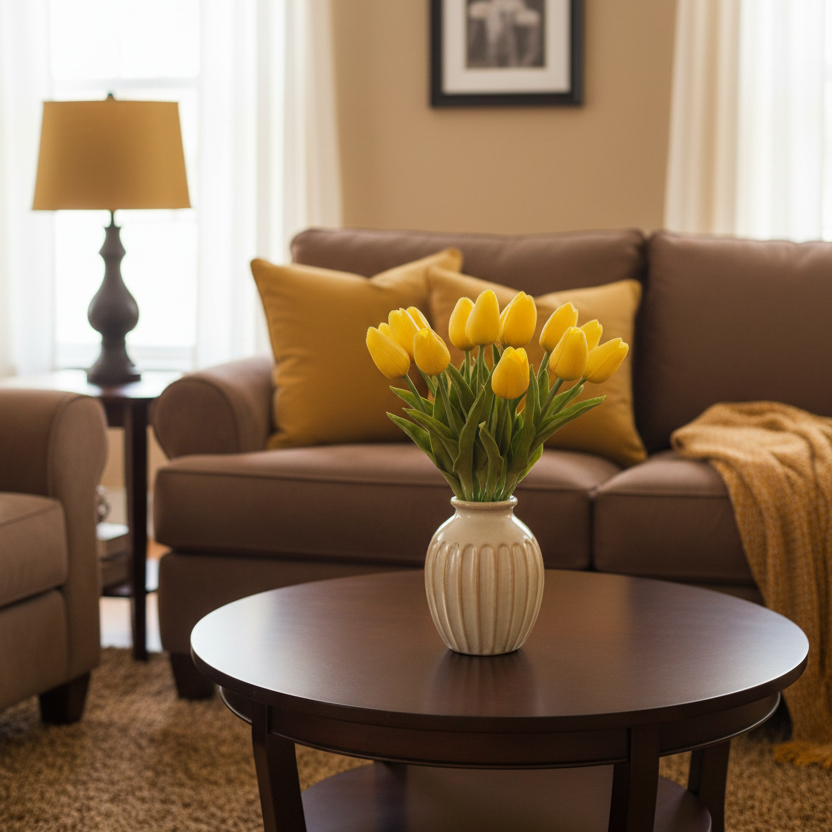 These stunning tulip blooms are truly lifelike. Our premium faux tulips are unmatched in their realism and are offered in an array of exquisite colours. Indulge in the beauty and elegance of our lifelike tulip blooms. Our premium faux tulips are second to none, capturing the true essence of these stunning flowers. Choose from a range of exquisite colours and elevate your space with sophistication and luxury. A beloved choice among Spruce Park Ranch customers. Each tulip varies slightly in shading adding to the realism. Sold individually. Accessories not included.