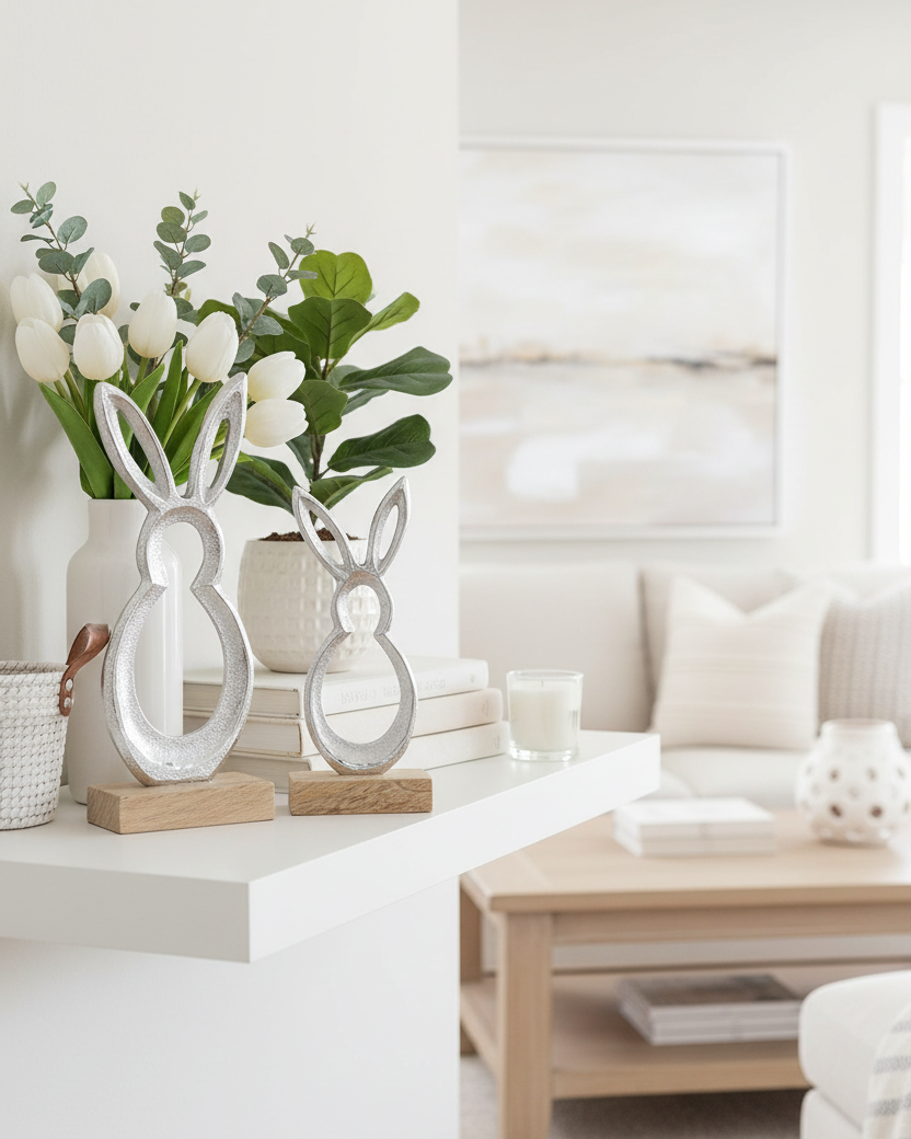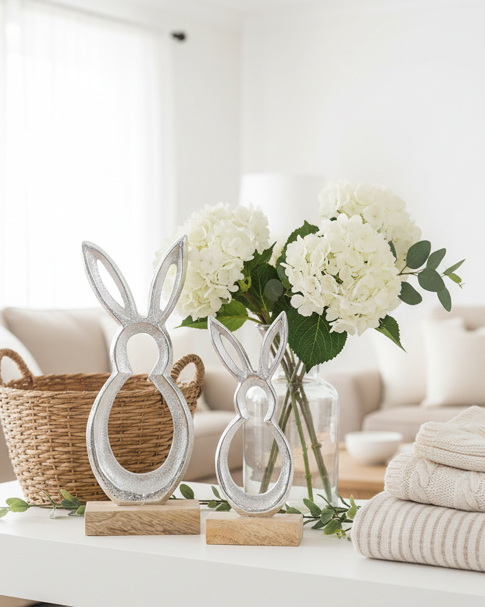 Add some whimsy to your decor with our Cutout Metal Bunny! This cute cutout bunny design, paired with the silver hue and wood accents, makes for the sweetest Easter accessory. Display on your mantel or bookshelf for a stylish touch. Due to the nature of materials, minor imperfections are part of the charm. Sold individually. Accessories sold separately.