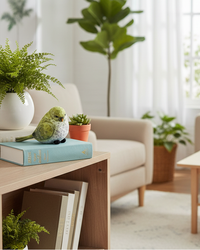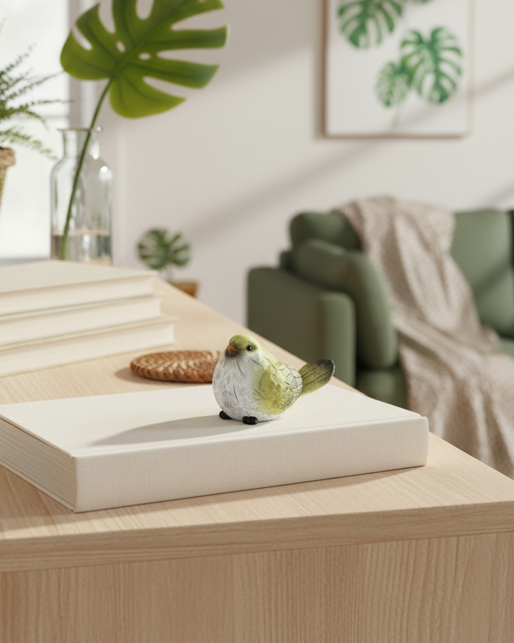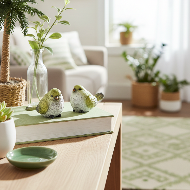 Bring a splash of springtime charm to your home with these adorable green chickadees. Perfect for perching atop stacked books, nestling on shelves, or anchoring a carefully curated vignette, these cheerful little birds add whimsy and warmth to any room. Their hue captures the essence of the season, making them an ideal accent piece for spring and summer décor that sparks joy wherever they're displayed. Accessories not included.