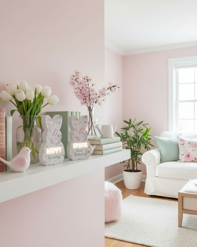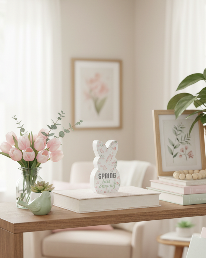 Hop into spring with this delightful Light Up Bunny Cutout Block! By day, admire its charming spring-inspired design that brings cheerful character to any space. When evening arrives, the light-up feature adds a cozy glow to your home. Perfect for shelves, stacked alongside your favourite books, or as a whimsical coffee table accent. Requires two AA batteries (not included). Includes timer function! Sold individually. Accessories not included.