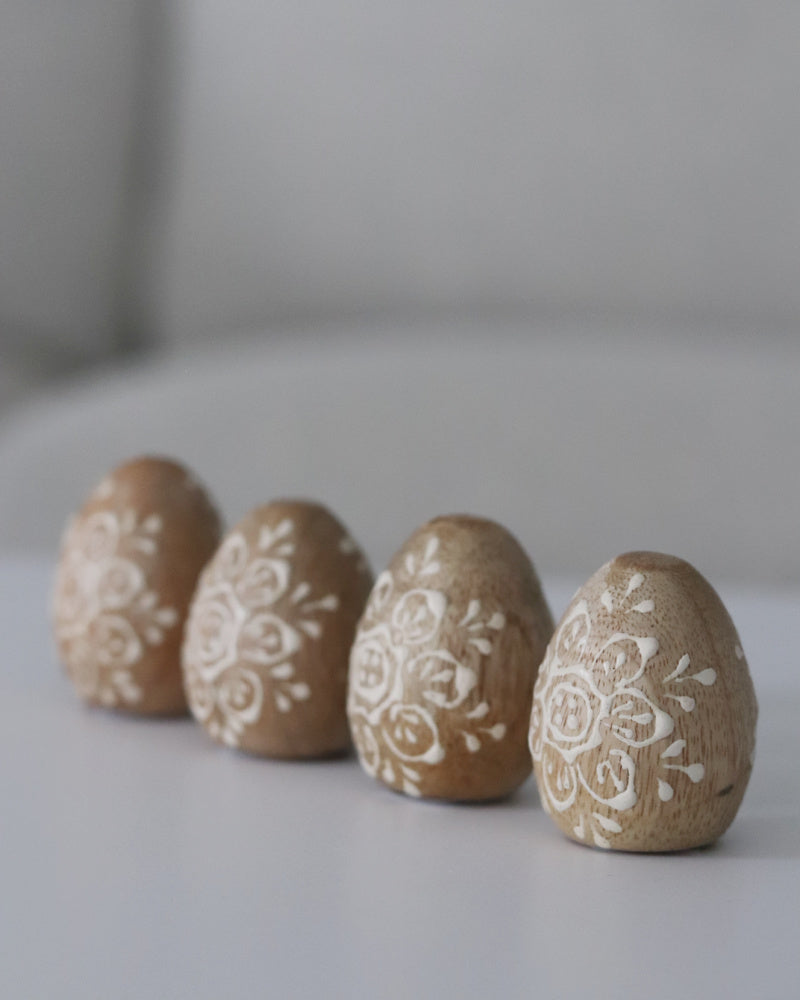 Add some whimsy to your decor with one of this mini Wood Egg. This cute design makes for an adorable Easter accessory. Display on your books, nestle in vignettes, or add to each place setting on an Easter table for a stylish touch. Due to the nature of  materials and design process, minor imperfections are part of the charm. No two are the same. Sold individually. Accessories not included.