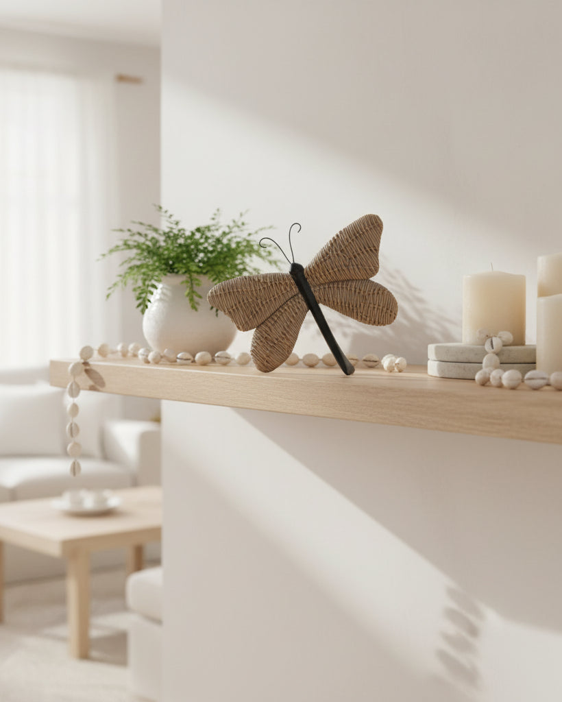 This artfully crafted resin dragonfly features an intricate surface detailing and a refined neutral aesthetic that complements any interior setting. Its versatile design allows for effortless integration into your existing décor scheme. Arrange on shelves, mantels, or accent tables to add understated elegance and visual interest to your space. Sold individually. Accessories sold separately.