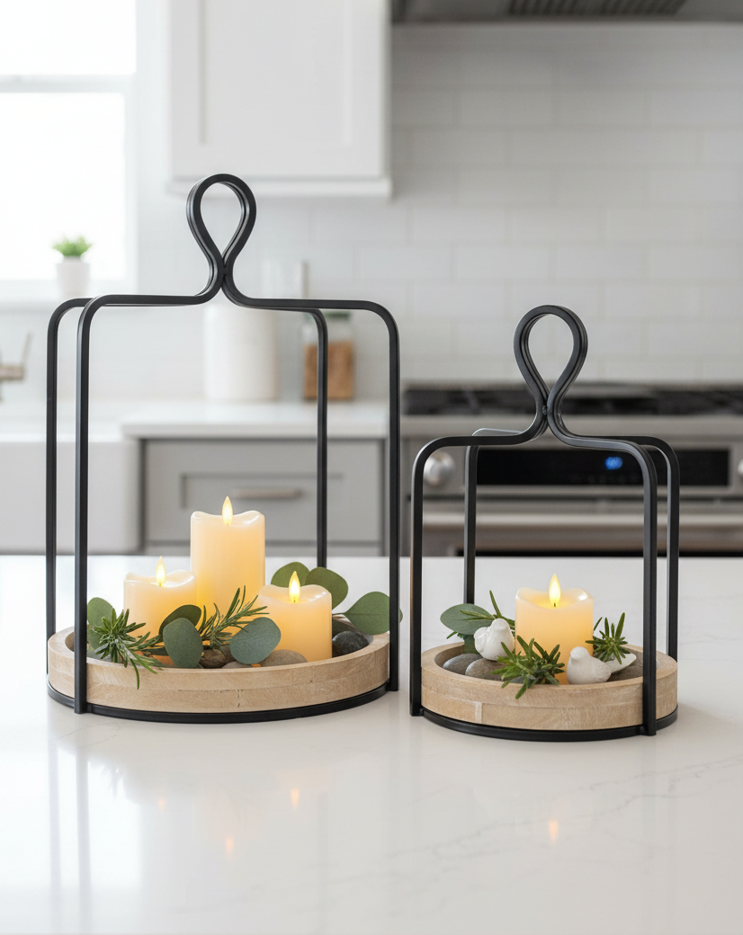 This wood and iron lantern brings together the best of both worlds - a sleek, modern design with a touch of old-world charm. Its iron frame and wood base make it truly beautiful. Use it in countless creative ways by adding a battery-powered candle and displaying it on a tabletop. It's a must-have for every season! Due to the nature of materials, minor imperfections are part of the charm. Sold individually. Accessories sold separately.