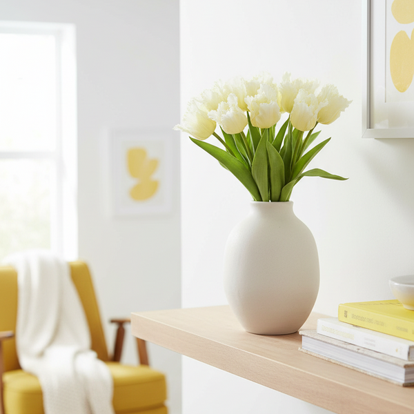 Peony and Tulip Bundle White Real Touch 18"