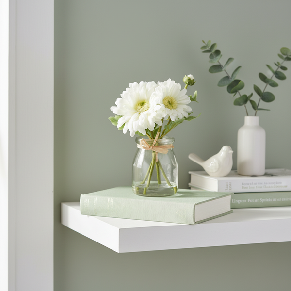 Mini White Daisy Bouquet in Glass Vase With Faux Water