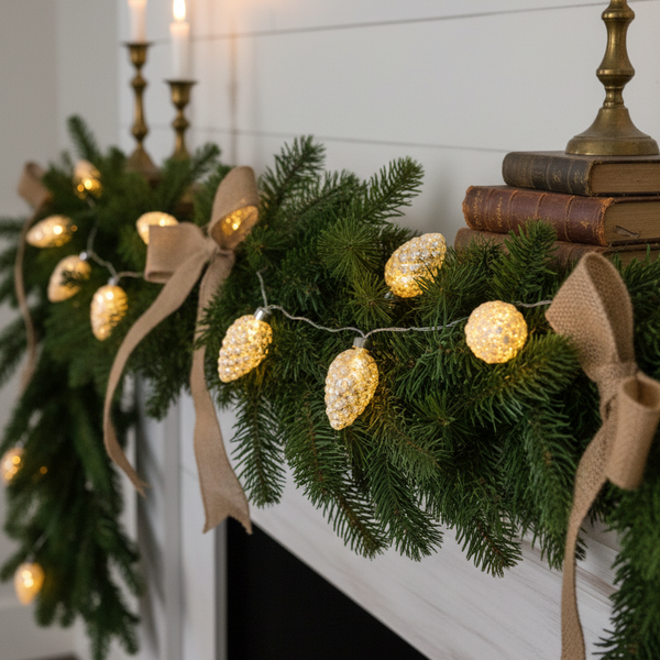 Mercury Glass Warm Glow LED Pinecone Garland White Frosted