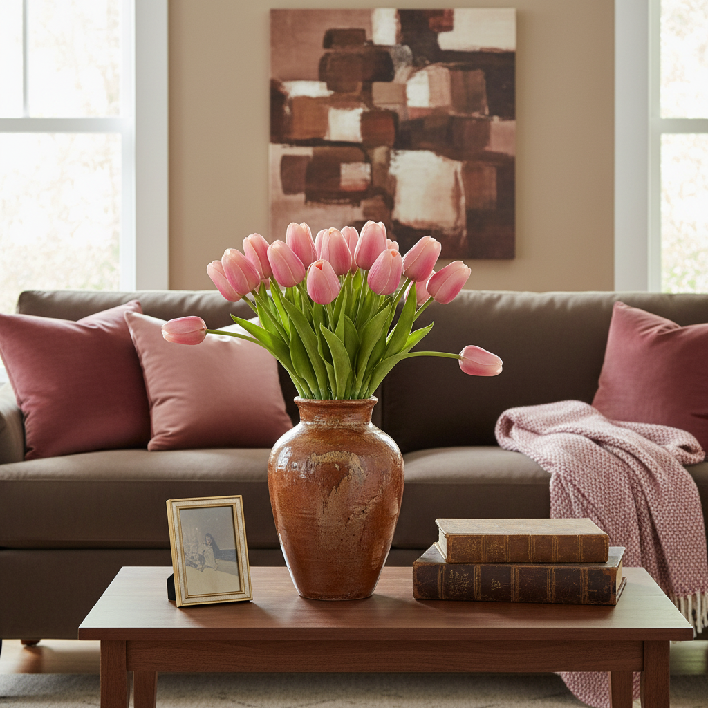 These stunning tulip blooms are truly lifelike. Our premium faux tulips are unmatched in their realism and are offered in an array of exquisite colours. Indulge in the beauty and elegance of our lifelike tulip blooms. Our premium faux tulips are second to none, capturing the true essence of these stunning flowers. Choose from a range of exquisite colours and elevate your space with sophistication and luxury. A beloved choice among Spruce Park Ranch customers. Each tulip varies slightly in shading adding to the realism. Sold individually. Accessories not included.