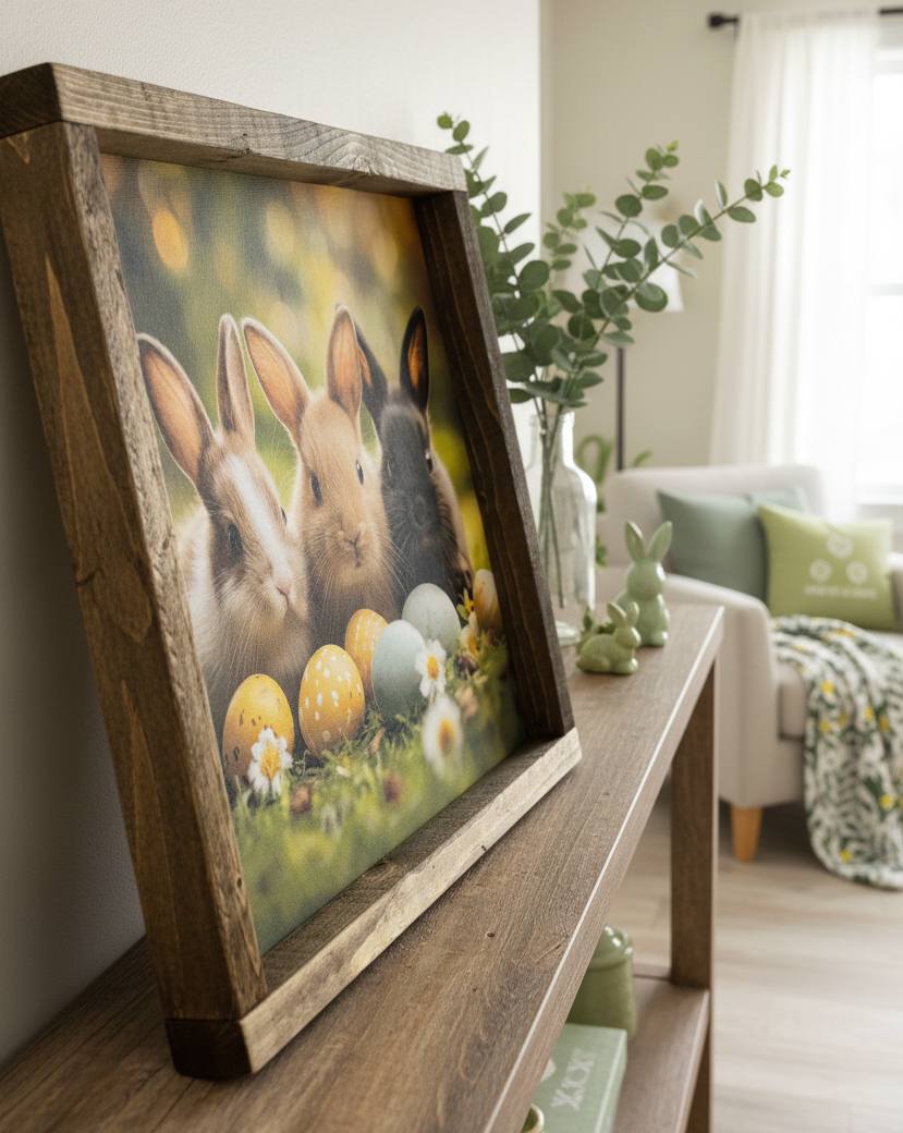 Introducing the Beneath the Easter Sun Canvas Print. A locally-made art piece made for those who wish to capture the sweet charm of Easter. With a wood frame, this piece featuring adorable bunnies is the perfect addition for any rabbit lover. Embrace the charm and exclusivity with this charming print to your home decor. As each item is made by hand and due to the design process, minor imperfections and slight variations are part of the charm. Lifestyle mockups are for inspiration. Made in Canada.