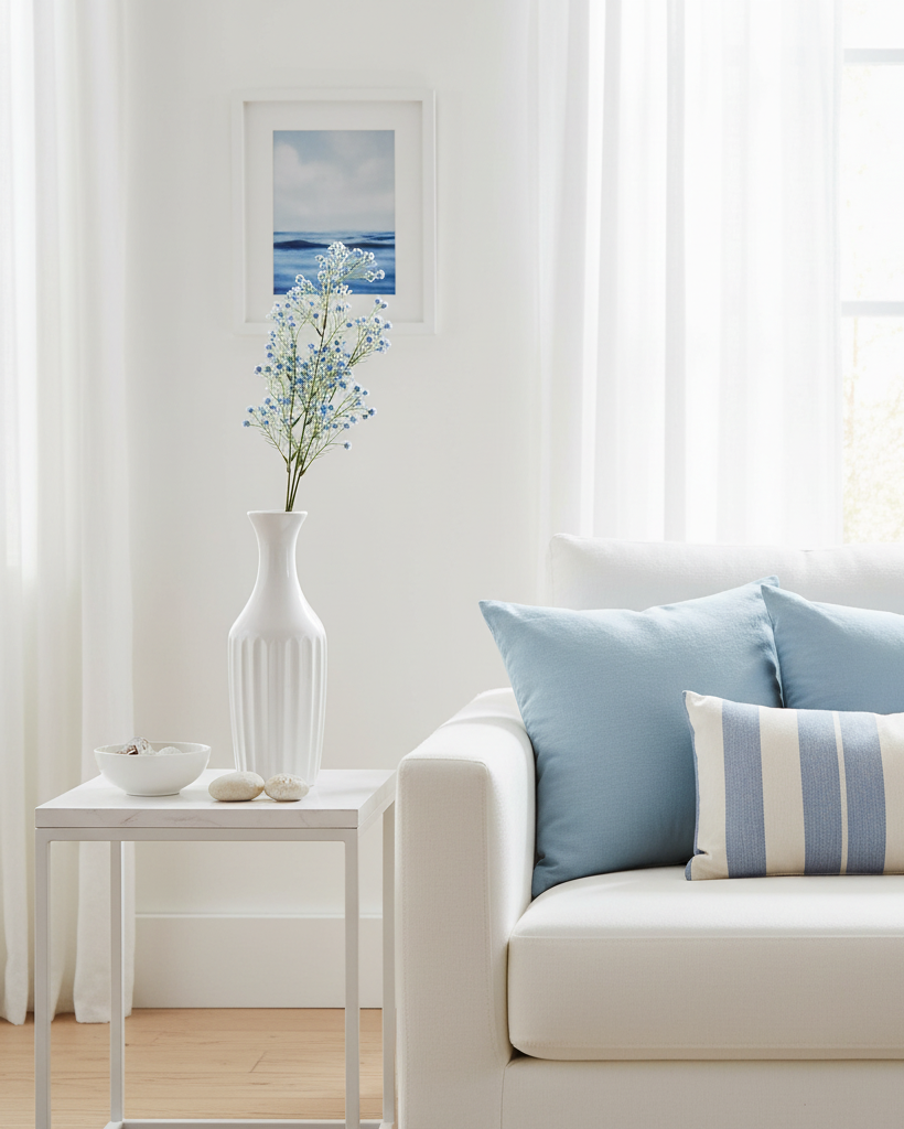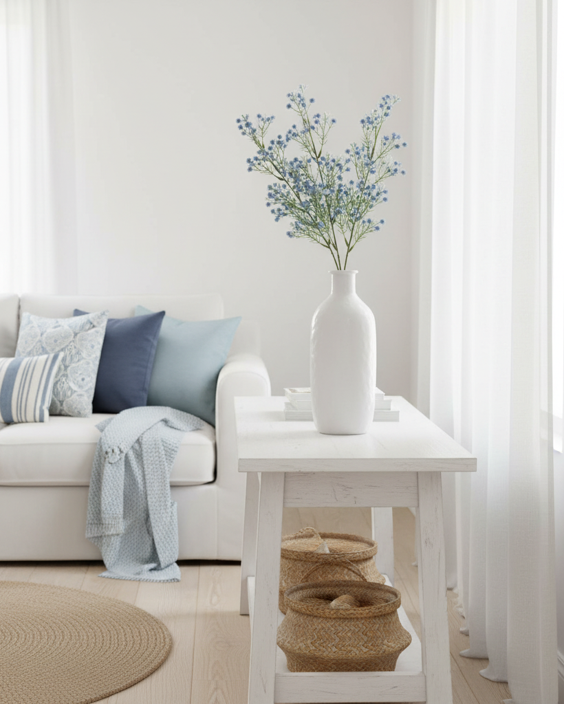 Indulge in timeless elegance with our Blue Baby's Breath Spray. This realistic faux floral features touches of white berries and will add a touch of sophistication to any space, reminding you of the classic beauty of baby's breath. Perfect for year-round enjoyment, this stem is a must-have for any floral enthusiast. Stem too long? Simply cut to size! Sold individually. Accessories not included.