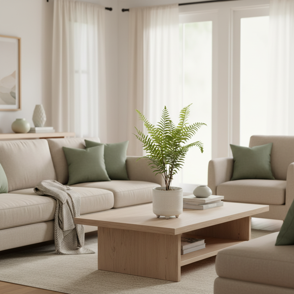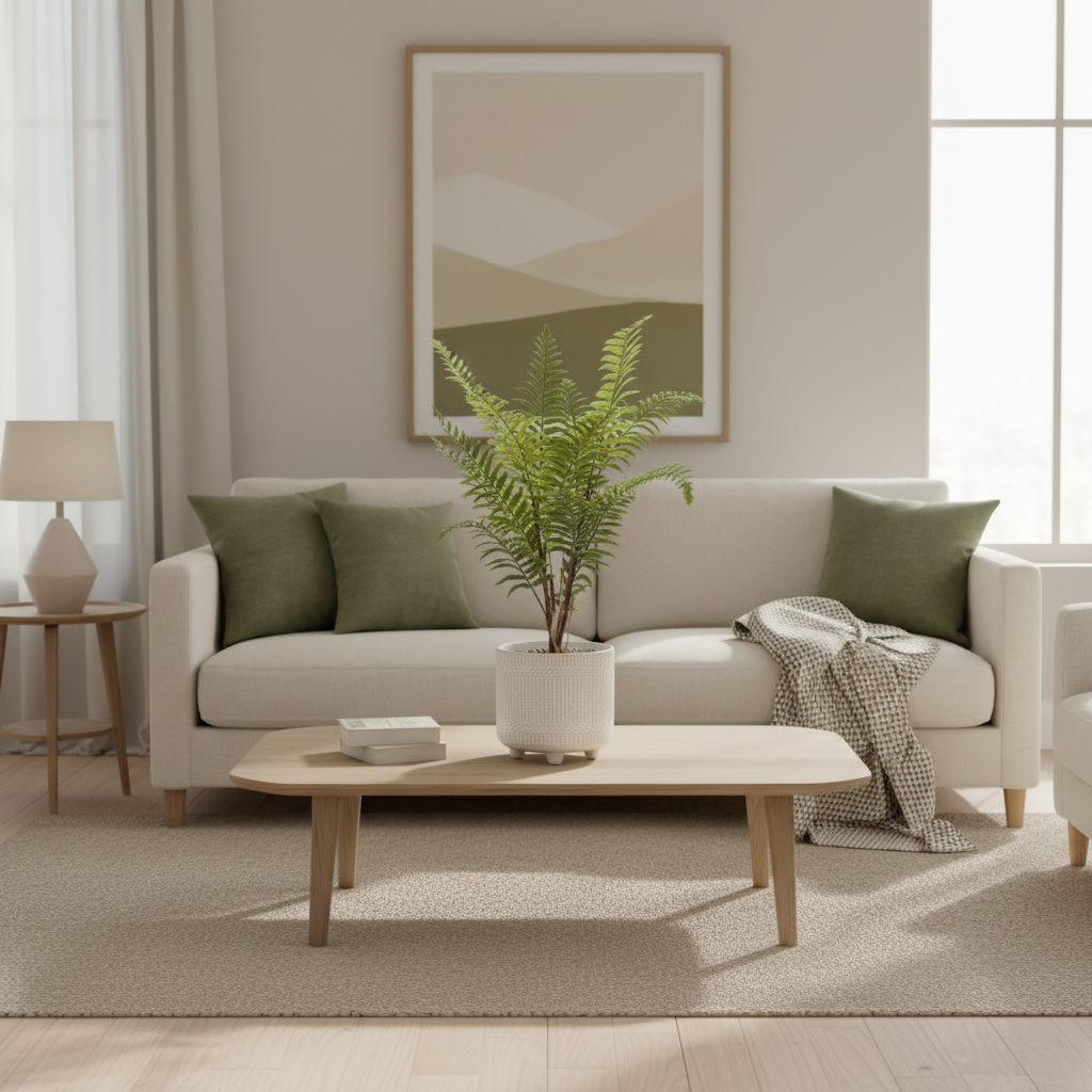 Introducing the Boston Fern in Ceramic Pot, a sophisticated addition to any space. This meticulously crafted fern, nestled in a ceramic pot with stones at base of the fern, adds a touch of elegance to your decor. Bring the beauty of nature indoors with this lifelike piece. Accessories not included.