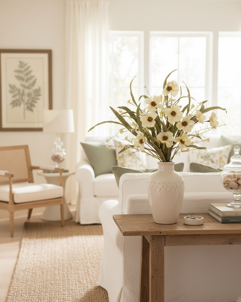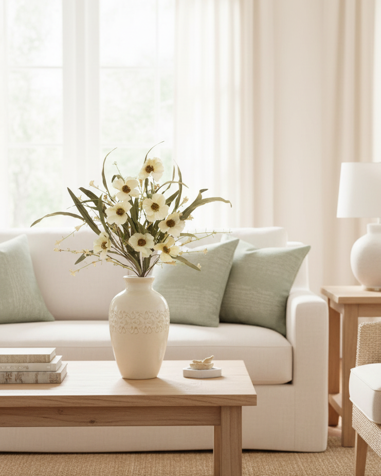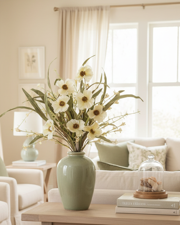 Bring a whisper of garden charm to your arrangements with this delightful cream pansy pick. Soft, dreamy florals in light gentle cream tones create an effortless elegance that transitions beautifully from spring blooms through lazy summer days. Mix and match with other stems to create your own custom floral masterpiece, or display as-is for instant botanical bliss. Sold individually. Accessories not included.