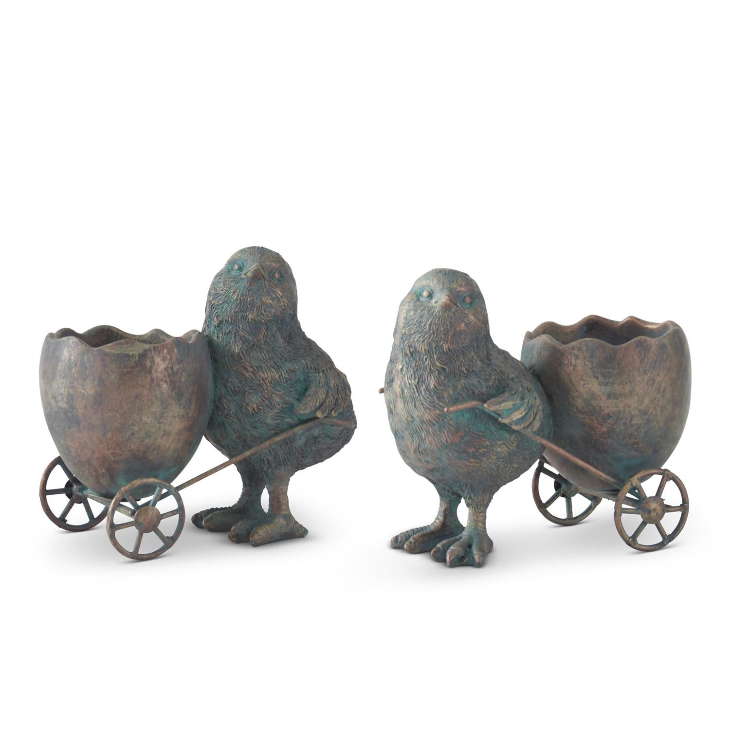 Green and Copper Chick with Egg Cart