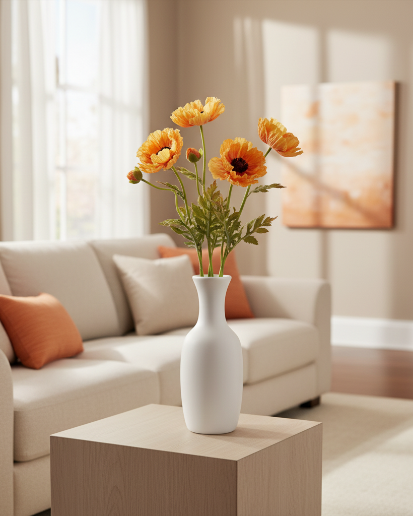 Indulge in timeless elegance with our Orange Poppy Stem. This realistic-to-the-touch faux floral will add a touch of sophistication to any space, reminding you of the classic beauty of poppies even after their blooming season. Perfect for year-round enjoyment, this stem is a must-have for any summer and fall floral enthusiast. Stem too long? Simply cut to size! Sold individually. Accessories not included.