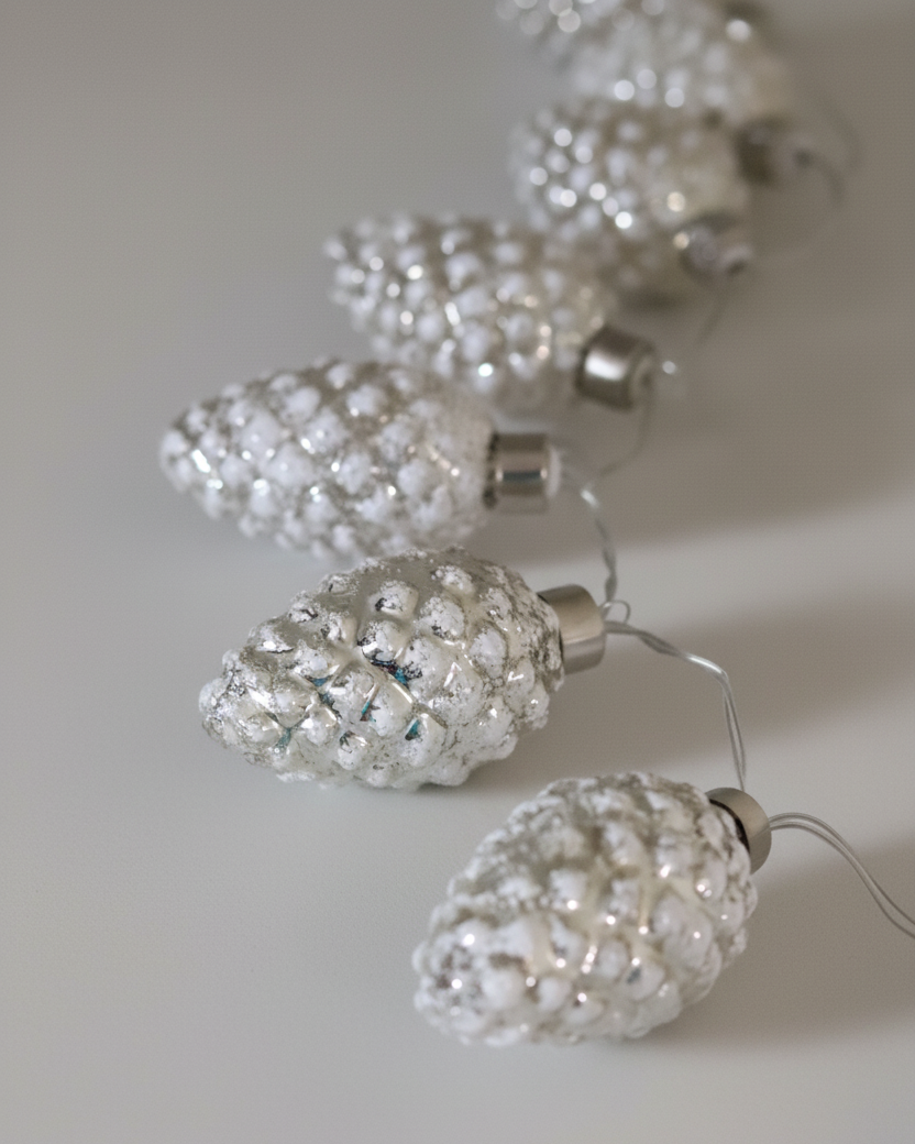 Mercury Glass Warm Glow LED Pinecone Garland White Frosted