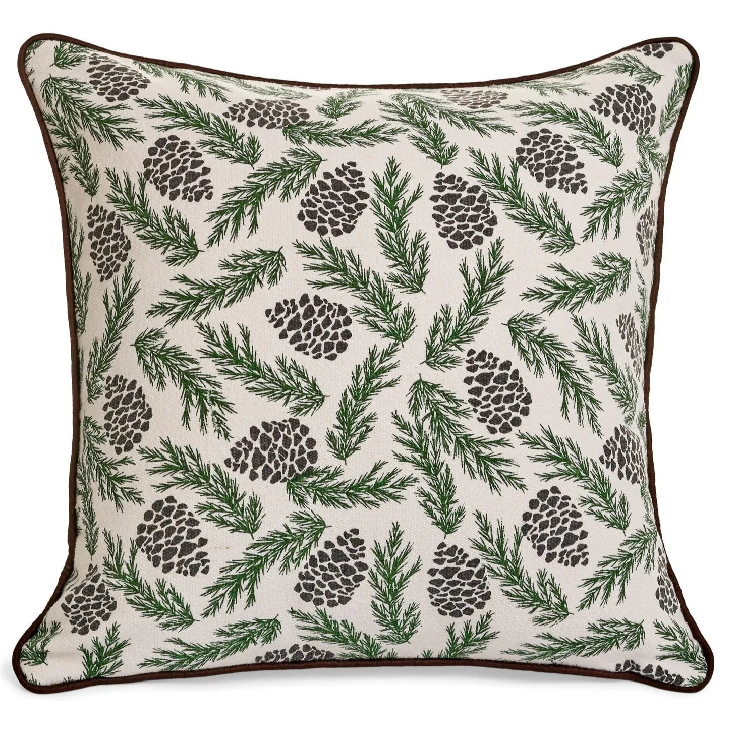 Elevate your home decor for the Holidays with this Pinecone Print Cotton Pillow. Its stunning, sophisticated pinecone and evergreen stem print make it the perfect addition to any bed or couch. Detailed and elegant, this pillow is a must-have for a touch of beauty and relaxation for the Christmas season. Accessories sold separately.