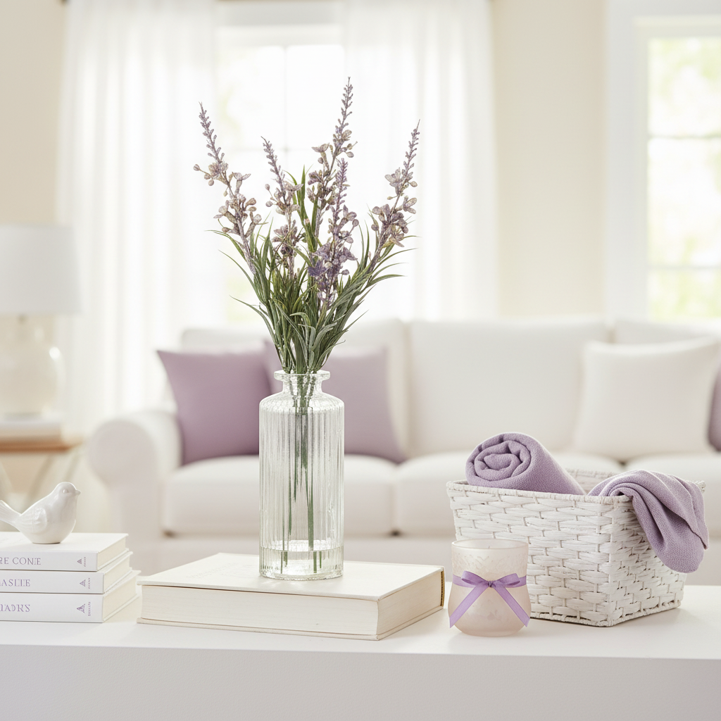 Purple Lavender Bouquet in Glass Vase With Faux Water