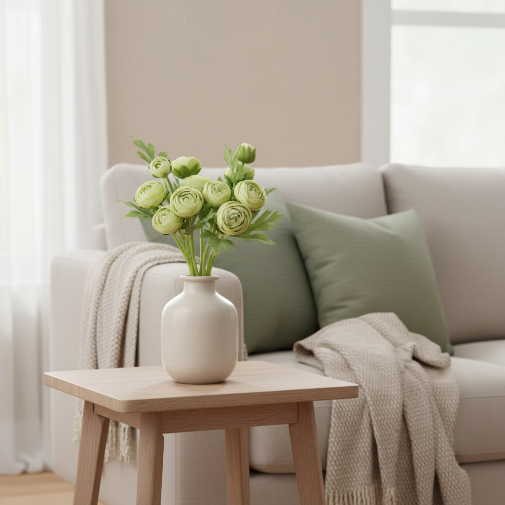 Indulge in timeless elegance with our Green Ranunculus real touch bundle. This realistic-to-the-touch and lifelike faux floral bundle will add a touch of sophistication to any space, reminding you of the classic beauty of Ranunculus even after their blooming season. Perfect for year-round enjoyment, this bundle is a must-have for any floral enthusiast. Sold individually. Accessories not included.