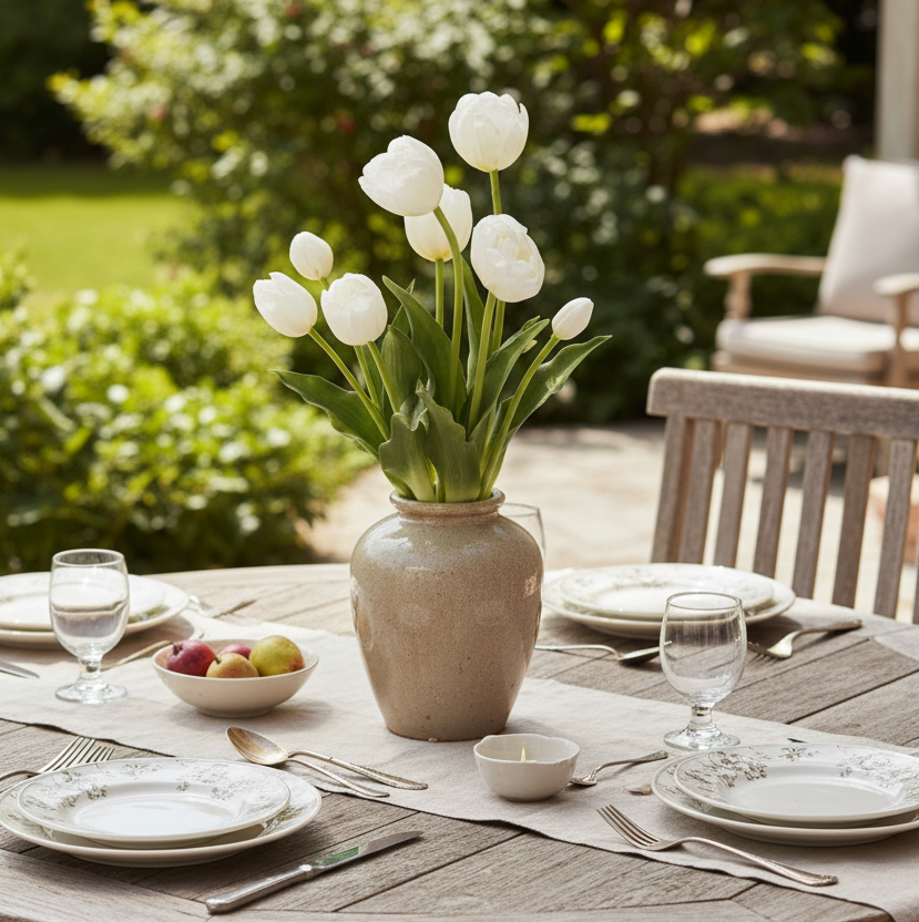 Indulge in the elegance and beauty of our UV Resistant White Real Touch Tulip Bundle. With lifelike buds and blooms in a stunning crisp white shade, this bundle of five can be enjoyed inside or out. Have a spot next to a window? These are the perfect choice for areas that are in direct sunlight! Want to low to little maintenance for outdoor areas? Try using these on a porch or window box! Enjoy the fresh decor all spring and summer long with this stunning addition to your home or yard. Accessories sold separately.