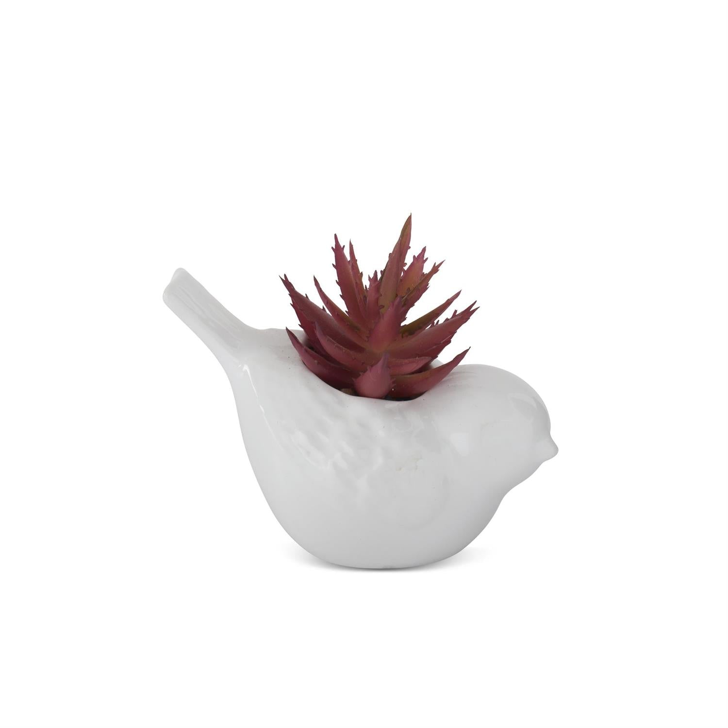 White Ceramic Bird with Succulent