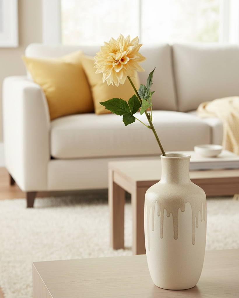 Indulge in timeless elegance with our real touch Yellow Dahlia Stem. This realistic-to-the-touch faux floral will add a touch of sophistication to any space, reminding you of the classic beauty of Dahlia's even after their blooming season. Perfect for year-round enjoyment, this stem is a must-have for any floral enthusiast. Stem too long? Simply cut to size! Sold individually. Accessories not included.